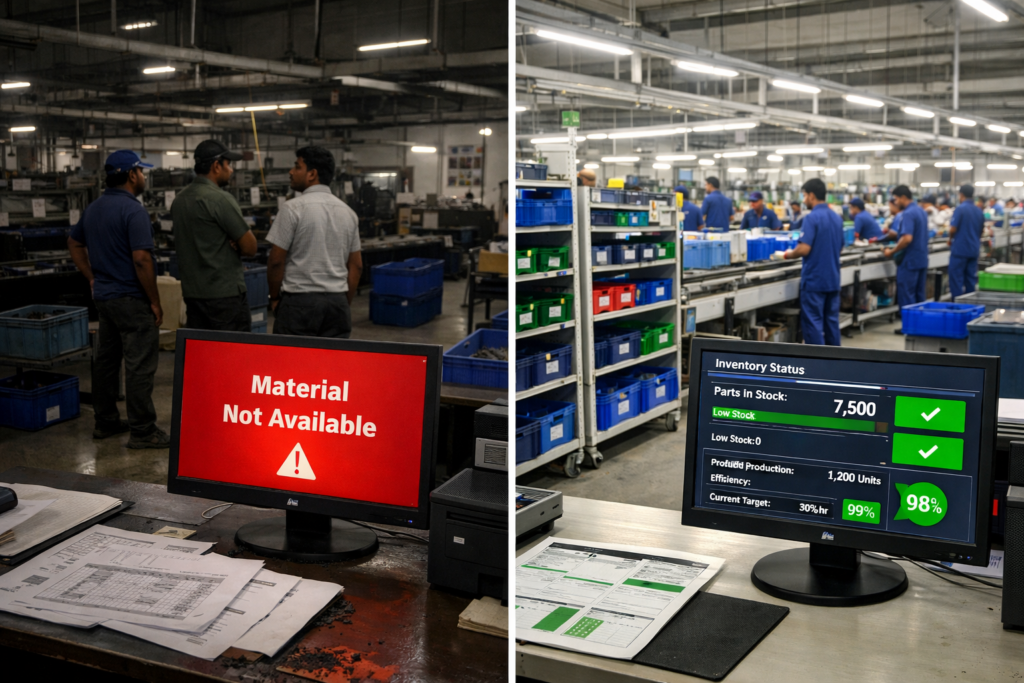 Poor material planning silently drains 10–20% productivity from Indian factories through stockouts, excess inventory, and manual Excel-based planning. By improving inventory visibility and production planning systems, manufacturers can recover lost capacity without new capital investment.